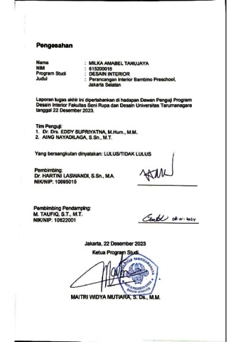 Tanujaya, Milka Amabel (2023) Perancangan interior Bambino Preschool, Jakarta Selatan (DI - 2522). Skripsi thesis, Universitas Tarumanagara.