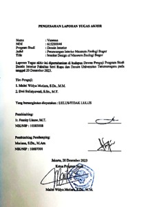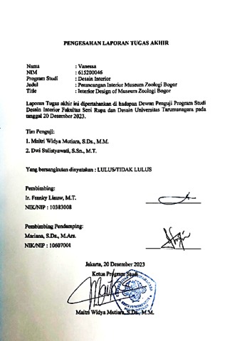 Vanessa, Vanessa (2023) Perancangan interior Museum Zoologi Bogor (DI - 2531). Skripsi thesis, Universitas Tarumanagara.