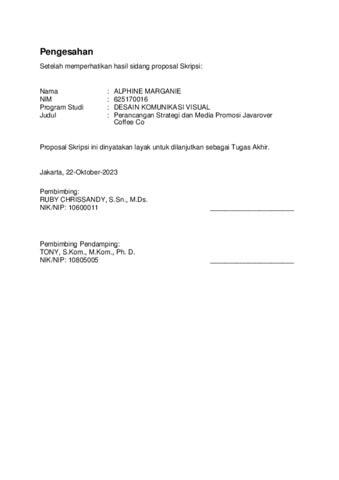 Marganie, Alphine (2023) Perancangan strategi dan media promosi Javarover Coffee Co. Skripsi thesis, Universitas Tarumanagara.