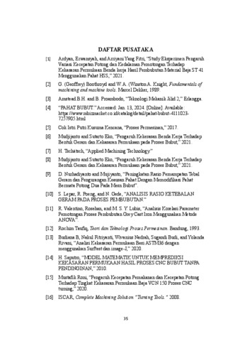 Raharjo, Joshua (2024) Pengaruh sudut potong dan kedalaman potong terhadap geram dan kekasaran permukaan benda kerja (TM - 1389). Skripsi thesis, Universitas Tarumanagara.