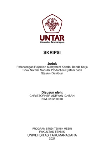 Ichsan, Christoper Adryan (2024) Perancangan rejection subsystem kondisi benda kerja tidak normal modular production system pada stasiun distribusi (TM - 1391). Skripsi thesis, Universitas Tarumanagara.