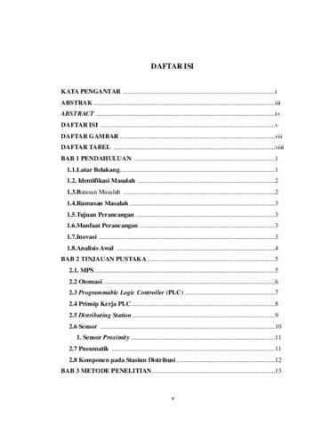 Di era industri 4.0, teknologi sistem otomasi yang digunakan semakin berkembang pesat. Sistem otomasi yang terdapat pada industri sangat bermanfaat terutama untuk mengurangi waktu produksi. Salah satu alat yang dapat digunakan untuk mensimulasikan produksi di sebuah industri adalah Modular Produstion System (MPS). MPS sendiri terdiri dari beberapa stasiun untuk mensimulasikan proses produksi dalam skala kecil. Dalam sebuah sistem produksi, tentunya dibutuhkan sebuah sistem yang dapat mendeteksi kondisi benda kerja yang tidak normal. Sistem ini nantinya akan digerakkan oleh Programable Logic Controller (PLC). Sistem ini akan ditempatkan pada stasiun distribusi. Sistem rejection pada MPS sangat diperlukan karena, pada MPS masih terdapat proses manual yaitu pada proses pemasukan benda kerja ke stack magazine. Dengan adanya proses manual ini, kemungkinan benda kerja dengan kondisi tidak normal akan terproses oleh MPS. Kondisi ini tidak mungkin diproses lebih lanjut ke pick and place station. Oleh karena itu, benda dengan kondisi tidak normal harus dipisahkan dengan sistem rejection ini. Nantinya, pada penelitian ini akan dibahas mengenai perancangan sistem rejection untuk kondisi benda kerja yang tidak normal pada modular production system pada stasiun distribusi.