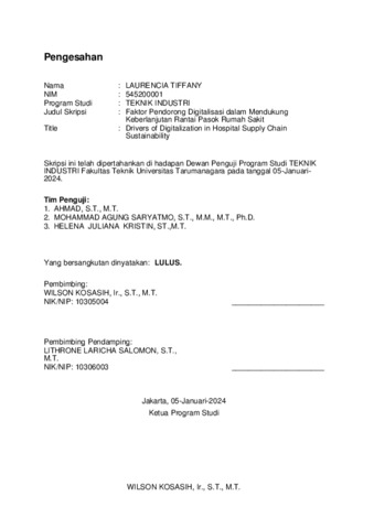 Tiffany, Laurencia (2024) Faktor pendorong digitalisasi dalam mendukung keberlanjutan rantai pasok rumah sakit (T. Ind - 835). Skripsi thesis, Universitas Tarumanagara.