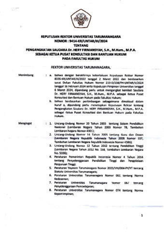 Firmansyah, Hery Surat Keputusan Rektor Terkait Kepala PKBH Periode 2024-2026. ..