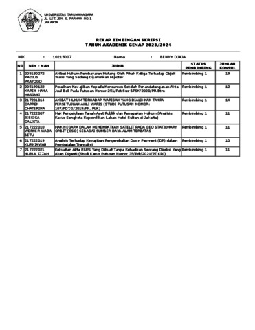 Djaja, Benny Rekap Bimbingan Skripsi Tesis Semester Genap 2023-2024. Universitas Tarumanagara.
