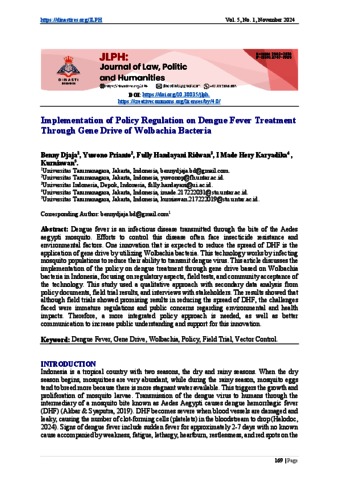 (NOMOR 5) (wolbachia) Implementation of Policy Regulation on Dengue Fever Treatment Through Gene Drive of Wolbachia Bacteria.pdf Download (304kB) | Preview |