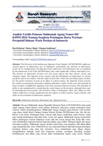 (NOMOR 8) Analisis Yuridis Putusan Mahkamah Agung Nomor 845 KPDT2024 Tentang Sengketa Pembagian Harta Warisan Perspektif Hukum Waris Perdata di.pdf Download (133kB) | Preview |