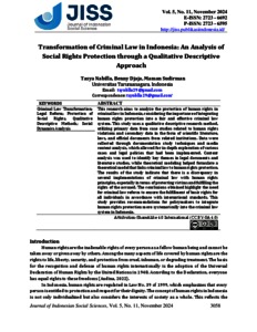 Nabilla, Tasya and Djaja, Benny and Sudirman, Maman Transformation of Criminal Law in Indonesia: An Analysis of Social Rights Protection through a Qualitative Descriptive Approach. Journal of Indonesian Social Sciences.