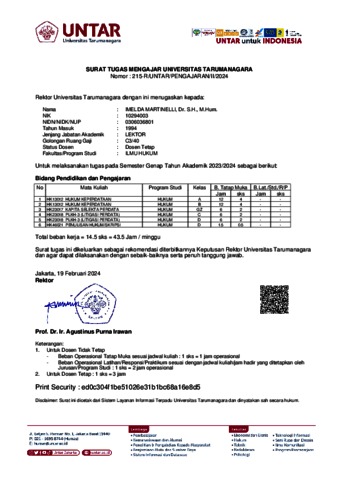 Martinelli, Imelda Rekap Pengajaran Dosen. ..