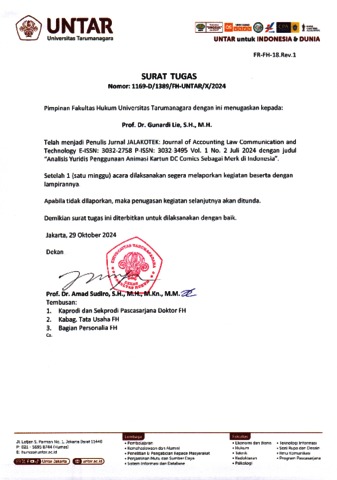 Khasana, Andi Khuswatun and Gunardi, Lie Analisis Yuridis Penggunaan Animasi Kartun DC Comics Sebagai Merk di Indonesia. JALAKOTEK: Journal of Accounting Law Communication and Technology.