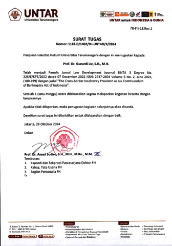 Andrian, Andrian and Gunardi, Lie (2022) The Cross-border Insolvency Provision as Ius Contituendum of Bankruptcy Act of Indonesia. Law Development Journal.