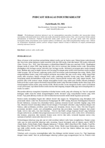 Rusdi, Farid (2012) PODCAST SEBAGAI INDUSTRI KREATIF. Karya Ilmiah Dosen. ISSN 978-602-99013-2-6