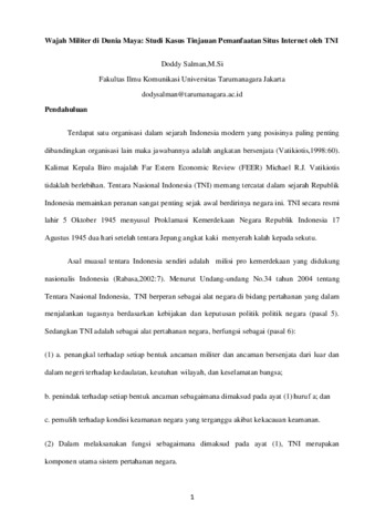 Salman, Doddy (2012) Wajah Militer di Dunia Maya: Studi Kasus Tinjauan Pemanfaatan Situs Internet oleh TNI. Karya Ilmiah Dosen. pp. 1-18.