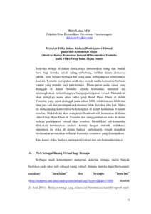 Kata kunci: etika, budaya partisipatori virtual dan sub-komunitas maya.