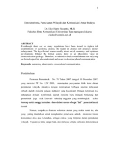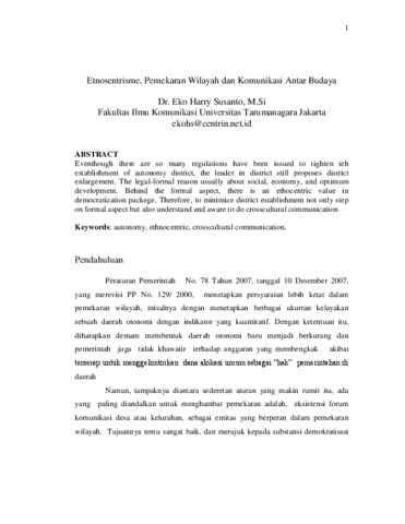 Susanto, Eko Harry (2009) Etnosentrisme, Pemekaran Wilayah dan Komunikasi Antar Budaya. Karya Ilmiah Dosen. pp. 1-13.