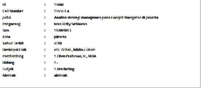 Setiawan, Ivan Rizky (2010) Analisa strategi manajemen pada Cockpit Navigator di Jakarta. Informasi Detail Skripsi/Thesis. p. 72. ISSN 117091013