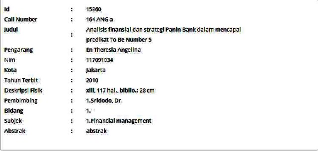Angelina, En Theresia (2010) Analisis finansial dan strategi Panin Bank dalam mencapai predikat To Be Number 5. Informasi Detail Skripsi/Thesis. p. 117. ISSN 117091034