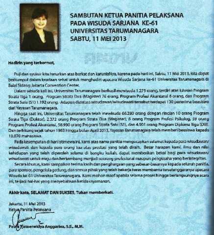 UNTAR, WISUDA sambutan wisuda Untar ke 61. Sambutan Wisuda Untar ke 61.