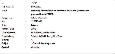 Anindhito, Adhitya (2010) Analisis pemberian kredit komersial Bank ABC (studi kasus proposal kredit PT XYZ). Informasi Detail Skripsi/Thesis. p. 106. ISSN 117082001