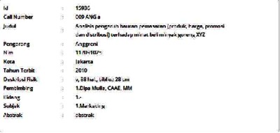 Anggreni, Anggreni (2010) Analisis pengaruh bauran pemasaran (produk, harga, promosi dan distribusi) terhadap minat beli minyak goreng XYZ. Informasi Detail Skripsi/Thesis. p. 88. ISSN 117091025