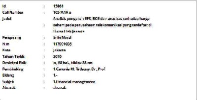 Marsi, Erlin (2010) Analisis pengaruh EPS, ROE dan arus kas terhadap harga saham pada perusahaan telekomunikasi yang terdaftar di Bursa Efek Jakarta. Informasi Detail Skripsi/Thesis. p. 68. ISSN 117091035