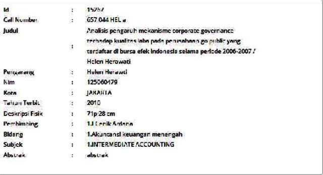 Herawati, Helen (2010) Analisis pengaruh mekanisme corporate governance terhadap kualitas laba pada perusahaan go public yang terdaftar di bursa efek indonesia selama periode 2006-2007. Informasi Detail Skripsi/Thesis. p. 71. ISSN 125060479