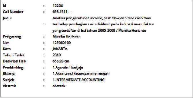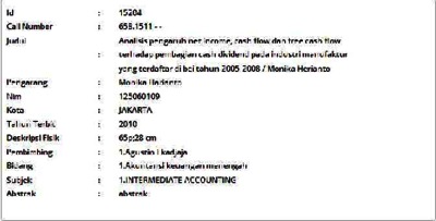 Harianto, Monika (2010) Analisis pengaruh net income, cash flow dan free cash flow terhadap pembagian cash dividend pada industri manufaktur yang terdaftar di bei tahun 2005-2008. Informasi Detail Skripsi/Thesis. p. 65. ISSN 125060109