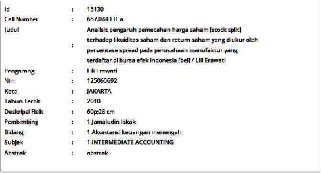 Erawati, Lili (2010) Analisis pengaruh pemecahan harga saham [stock split] terhadap likuiditas saham dan return saham yang diukur oleh persentase spread pada perusahaan manufaktur yang terdaftar di bursa efek indonesia [bei]. Informasi Detail Skripsi/Thesis. p. 60. ISSN 125060692