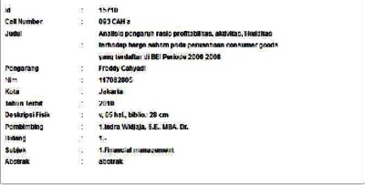 Cahyadi, Freddy (2010) Analisis pengaruh rasio profitabilitas, aktivitas, likuiditas terhadap harga saham pada perusahaan consumer goods yang terdaftar di BEI Periode 2006-2008. Informasi Detail Skripsi/Thesis. p. 65. ISSN 117082805