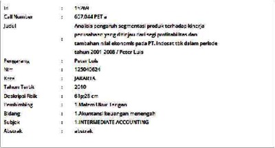 Luis, Peter (2010) Analisis pengaruh segmentasi produk terhadap kinerja perusahaan yang ditinjau dari segi profitabilitas dan tambahan nilai ekonomis pada PT. indosat tbk dalam periode tahun 2001-2008. Informasi Detail Skripsi/Thesis. p. 61. ISSN 125040624