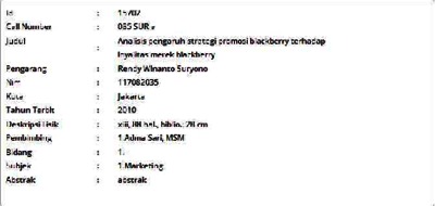 Suryono, Rendy Winanto (2010) Analisis pengaruh strategi promosi blackberry terhadap loyalitas merek blackberry. Informasi Detail Skripsi/Thesis. p. 88. ISSN 117082035