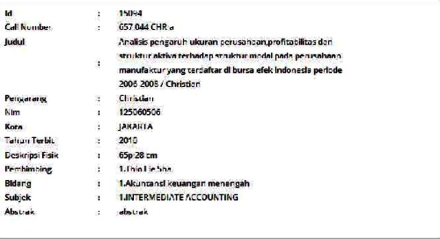 Christian, Christian (2010) Analisis pengaruh ukuran perusahaan,profitabilitas dan struktur aktiva terhadap struktur modal pada perusahaan manufaktur yang terdaftar di bursa efek indonesia periode 2006-2008. Informasi Detail Skripsi/Thesis. p. 65. ISSN 125060506