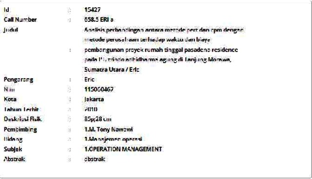 Eric, Eric (2010) Analisis perbandingan antara metode pert dan cpm dengan metode perusahaan terhadap waktu dan biaya pembangunan proyek rumah tinggal pasadena residence pada PT. trindo adhidharma agung di Tanjung Morawa, Sumatra Utara. Informasi Detail Skripsi. p. 85. ISSN 115060467