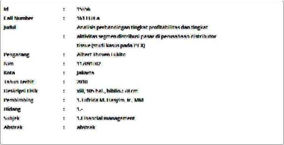 Lukito, Albert Thoven (2010) Analisis perbandingan tingkat profitabilitas dan tingkat aktivitas segmen distribusi pasar di perusahaan distributor tissue (studi kasus pada PT X). Informasi Detail Thesis. p. 105. ISSN 117091002