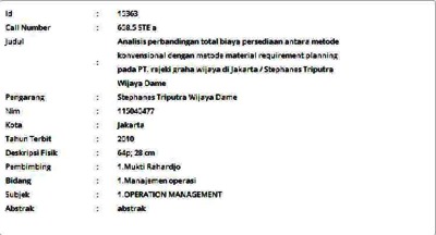Wijaya Dame, Stephanes Triputra (2010) Analisis perbandingan total biaya persediaan antara metode konvensional dengan metode material requirement planning pada PT. rejeki graha wijaya di Jakarta. Informasi Detail Skripsi. p. 64. ISSN 115040477