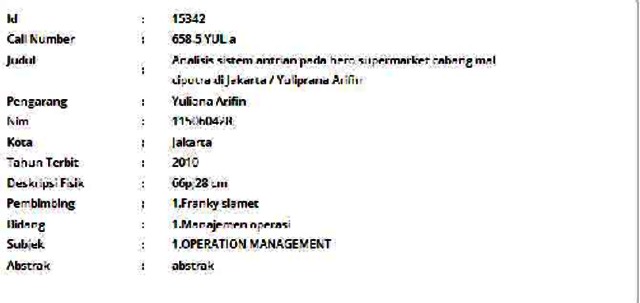 Arifin, Yuliana (2010) Analisis sistem antrian pada hero supermarket cabang mal ciputra di Jakarta. Informasi Detail Skripsi. p. 66. ISSN 115060428