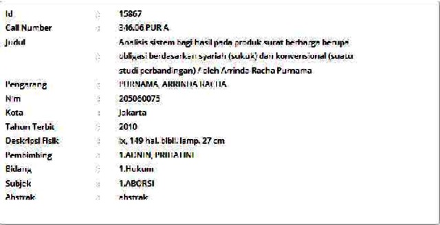 Purnama, Arrinda Racha (2010) Analisis sistem bagi hasil pada produk surat berharga berupa obligasi berdasarkan syariah (sukuk) dan konvensional (suatu studi perbandingan). Informasi Detail Skripsi. p. 149. ISSN 205060075