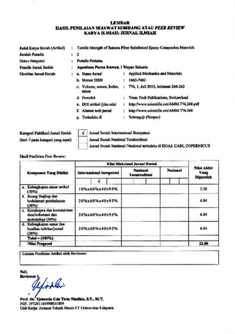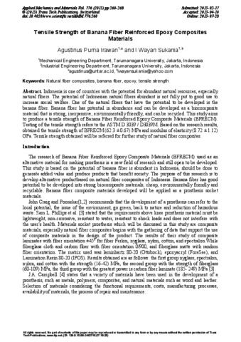 Purna Irawan, Agustinus and Sukania, I Wayan (2015) Tensile Strength of Banana Fiber Reinforced Epoxy Composites Materials. Karya Ilmiah Dosen.