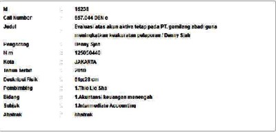 Sjah, Denny (2010) Evaluasi atas akun aktiva tetap pada PT. gemilang abadi guna meningkatkan keakuratan pelaporan. Informasi Detail Skripsi. p. 61. ISSN 125050446