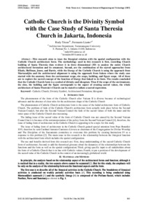 Trisno, Rudy and Lianto, Fermanto (2018) Catholic Church is the Divinity Symbol with the Case Study of Santa Theresia Church in Jakarta, Indonesia. International Journal of Engineering and Technology, 10 (3). pp. 865-872. ISSN ISSN (Print): 2319-8613, ISSN (Online): 0975-4024