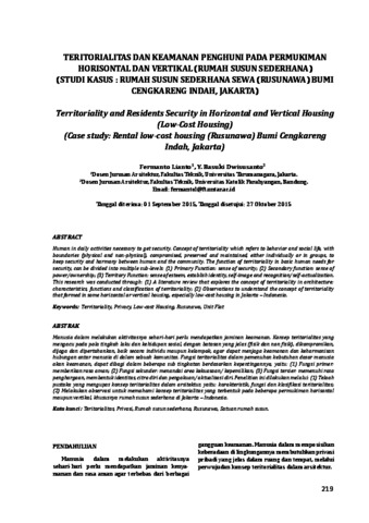 Lianto, Fermanto (2015) TERITORIALITAS DAN KEAMANAN PENGHUNI PADA PERMUKIMAN HORISONTAL DAN VERTIKAL (RUMAH SUSUN SEDERHANA), [STUDI KASUS: RUMAH SUSUN SEDERHANA SEWA (RUSUNAWA) BUMI CENGKARENG INDAH, JAKARTA]. JURNAL SOSIAL EKONOMI PEKERJAAN UMUM, 7 (3). pp. 219-228. ISSN ISSN: 2085 - 384X (print), ISSN: 2579 - 3578 (online)