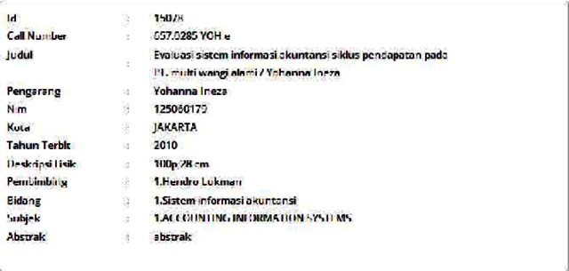 Ineza, Yohanna (2010) Evaluasi sistem informasi akuntansi siklus pendapatan pada PT. multi wangi alami. Informasi Detail Skripsi. p. 100. ISSN 125060179
