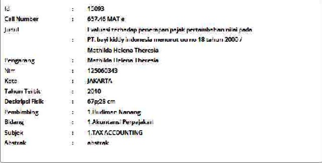 Helena Theresia, Mathilda (2010) Evaluasi terhadap penerapan pajak pertambahan nilai pada PT. bayi kiddy indonesia menurut uu no 18 tahun 2000. Informasi Detail Skripsi. p. 67. ISSN 125060343