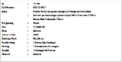 Victor, Victor (2010) Faktor-Faktor yang Mempengaruhi Harga Saham Sektor Industri Pertambangan Periode Juni 2007-Desember 2008 di Bursa Efek Indonesia. Skripsi thesis, Universitas Tarumanagara.