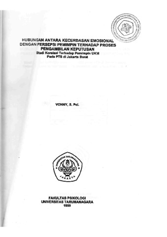 VONNY, VONNY (1999) HUBUNGAN ANTARA KECERDASAN EMOSIONAL DENGAN PERSEPSI PEMIMPIN TERHADAP PROSES PENGAMBILAN KEPUTUSAN. Skripsi thesis, UNIVERSITAS TARUMANAGARA.