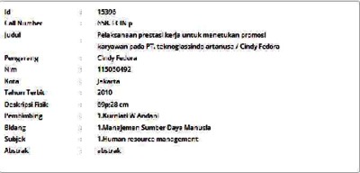 Fedora, Cindy (2010) Pelaksanaan Prestasi Kerja untuk Menetukan Promosi Karyawan pada PT. Teknoglassindo Artanusa. Skripsi thesis, Universitas Tarumanagara.
