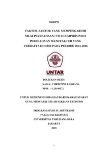 Lesmana, Christine (2018) Faktor-faktor yang mempengaruhi nilai perusahaan: studi empiris pada perusahaan manufaktur yang terdaftar di BEI pada periode 2014-2016/Christine Lesmana. Skripsi thesis, Universitas Tarumanagara.