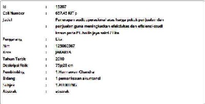 Lita, Lita (2010) Penerapan Audit Operasional atas Harga Pokok Penjualan dan Penjualan Guna Meningkatkan Efektivitas dan Efisiensi-Studi Kasus pada PT. Hollis Jaya Sakti. Skripsi thesis, Universitas Tarumanagara.