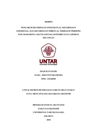 Paramitha, Khanti (2018) Pengaruh kecerdasan intelektual, kecerdasan emosional, dan kecerdasan spiritual terhadap persepsi etis mahasiswa akuntansi dalam pembuatan laporan keuangan/Khanti Paramitha. Skripsi thesis, Universitas Tarumanagara.