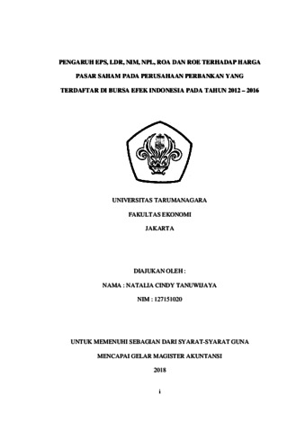 Tanuwijaya, Natalia Cindy (2018) Pengaruh EPS, LDR, NIM, NPL, ROA dan ROE terhadap harga pasar saham pada perusahaan perbankan yang terdaftar di BEI pada tahun 2012-2016./Natalia Cindy Tanuwijaya. Masters thesis, Universitas Tarumanagara.